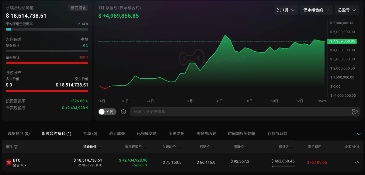 Hyperliquid's top 3 short positions in $BTC, led by address 0xd62…b7d91, have a floating profit of $2.434 million. He started shorting BTC on February 2nd and currently holds a 40x short position of 278.76 BTC (approximately $18.51 million), with an average entry price of $75,150.5. Link 👉