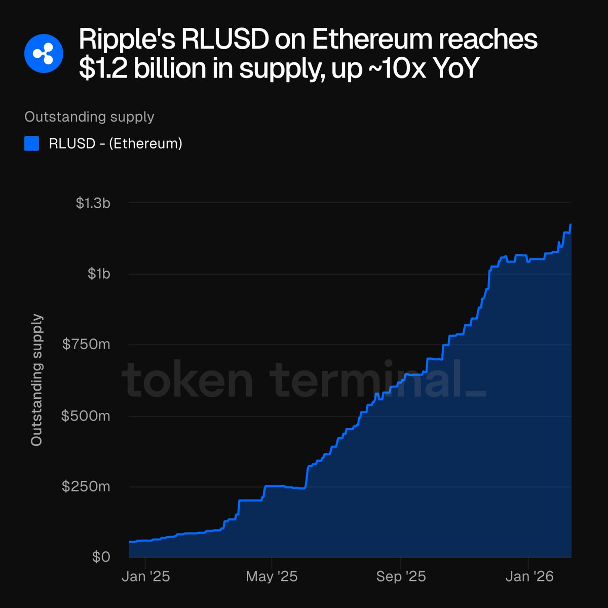 Breaking News: Ripple's (RLUSD) supply on Ethereum has reached $1.2 billion, a year-on-year increase of approximately 10 times.