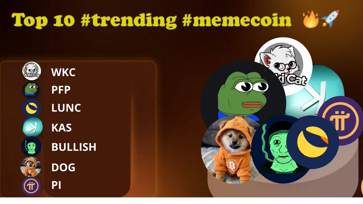 Top 10 Popular Cryptocurrencies #Popular #memecoin 🔥🚀 $WKC $PFP $LUNC $KAS $BULLISH $DOG $PI #XRPCommunity On-Chain