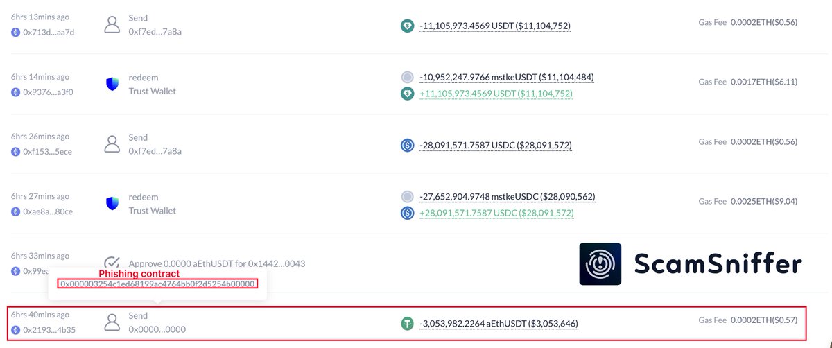 ⚠️ The victim signed a malicious transfer transaction, sending their aEthUSDT tokens (worth $3,053,646) to the phishing contract. 🎣💔