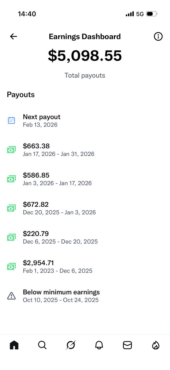 Today is February 13th. I haven't done anything; I'm just waiting for my creator earnings to pay me.