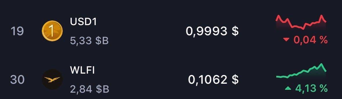 It's only a matter of time before @WorldLibertyFi's $USD1 and $WLFI enter the top ten by market capitalization. 🦅☝️