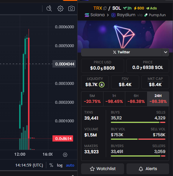 Immediately after the announcement, a new meme token was launched, copying the TRX logo and ticker. The token peaked at $0.0006, not even reaching the price of the original asset. Soon after that, the new token ended up with a rug pull, erasing 99% of its value. Most of the new TRX tokens on Solana turned out to be scams, prepared for a rug pull by the token developers.