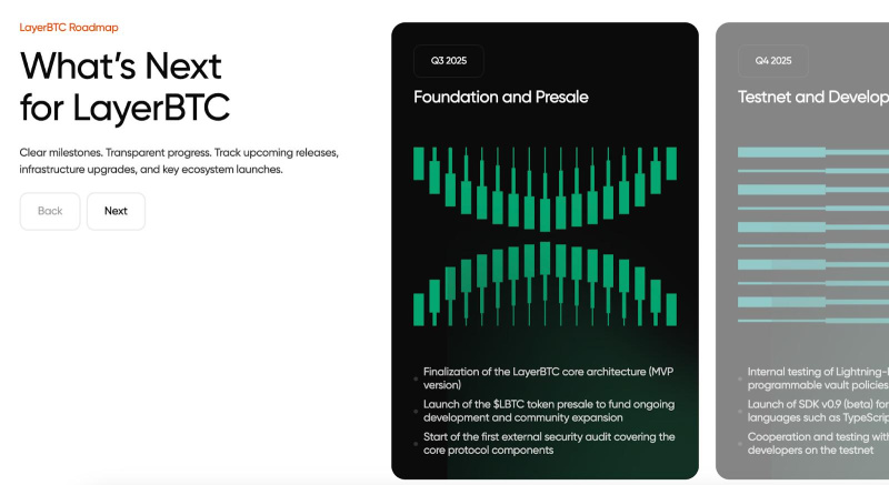 The following quarter will see the launch of a developer testnet and SDKs in multiple programming languages, enabling integration with wallets and apps. By Q1 2026, LayerBTC plans to activate mainnet smart vaults, open its developer grant program, and release SDK v1.0 for production-ready applications.