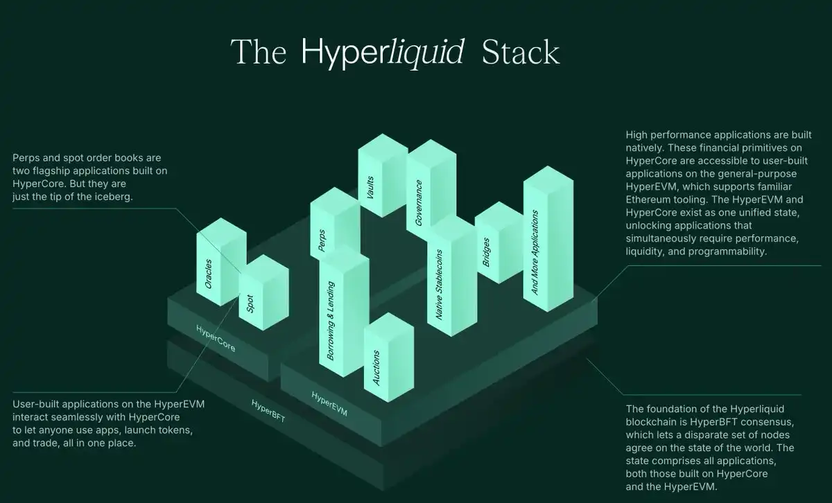 Dual-chain architecture: HyperLiquid consists of two main components: HyperCore and HyperEVM.