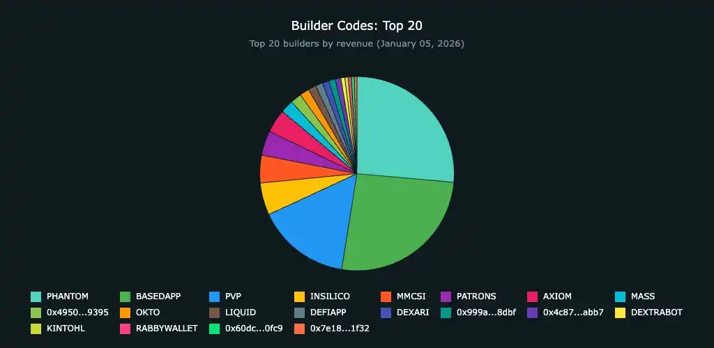 The chart below compares protocol revenue for implementing builder code, highlighting the top 20.