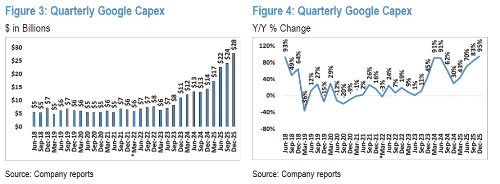 Google's capital expenditure guidance for 2026 has been revised upwards.$175 billion to $185 billionThe year-on-year growth rate was as high as97%Its funds are pouring into servers and technology infrastructure.