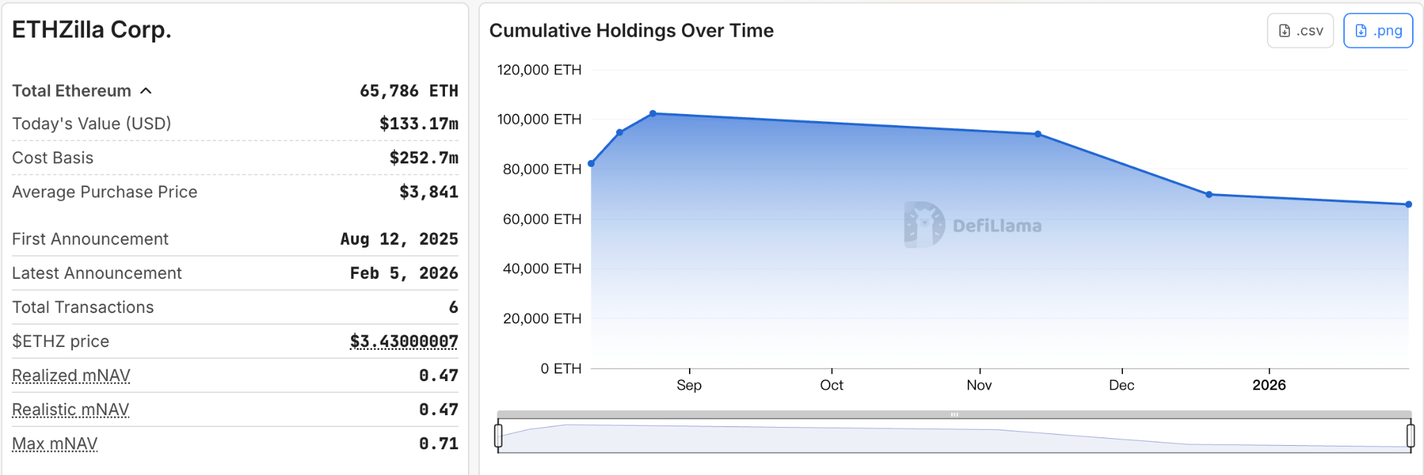 On November 13, 2025, ETHZilla began its first reduction of its holdings, selling 8,293 ETH. On December 25, ETHZilla disclosed that it had sold 24,291 ETH, raising approximately $74.5 million. This transaction was part of the redemption of outstanding senior secured convertible notes.The first ETH treasury reduction sampleCurrently, ETHZilla holds approximately 65,700 ETH.