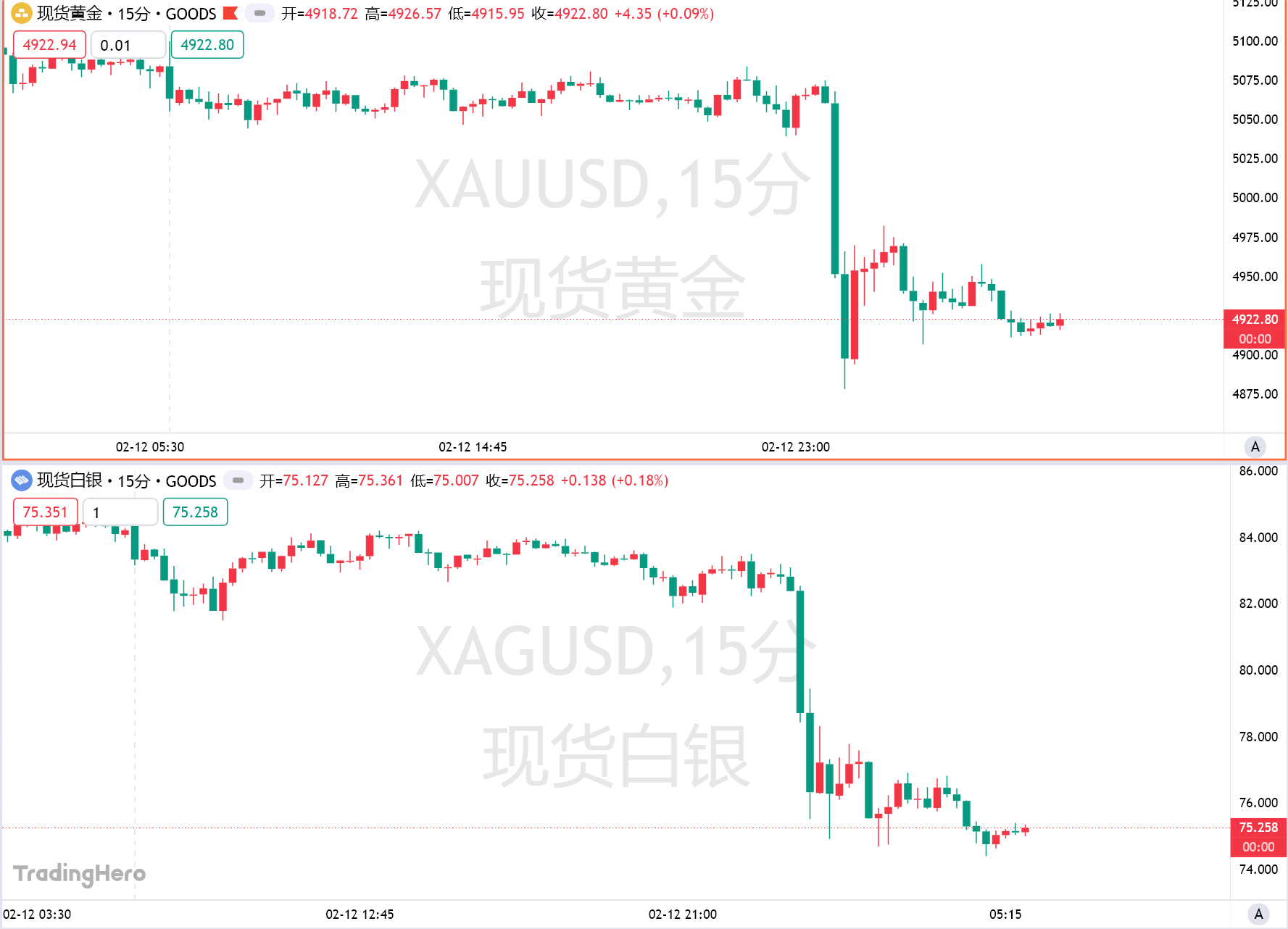 International spot gold prices plunged in US trading, falling nearly $200 within 30 minutes to a low of $4878.37 per ounce, before closing down more than 3%. Spot silver also plummeted nearly $9 during the day, closing at $75.26 per ounce, a daily drop of 10.64%. Copper prices on the London Metal Exchange fell as much as 2.9%.
