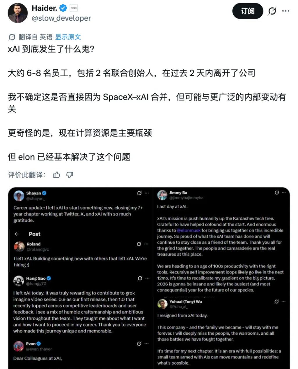 But the wording of the departing employees reveals a hidden meaning. Some said they wanted to accomplish big things with a small team, others felt "all AI labs are doing the same thing, it's too boring," and three even formed their own startup. So the question is, were these co-founders no longer a good fit for xAI, or is there a problem with xAI's direction?