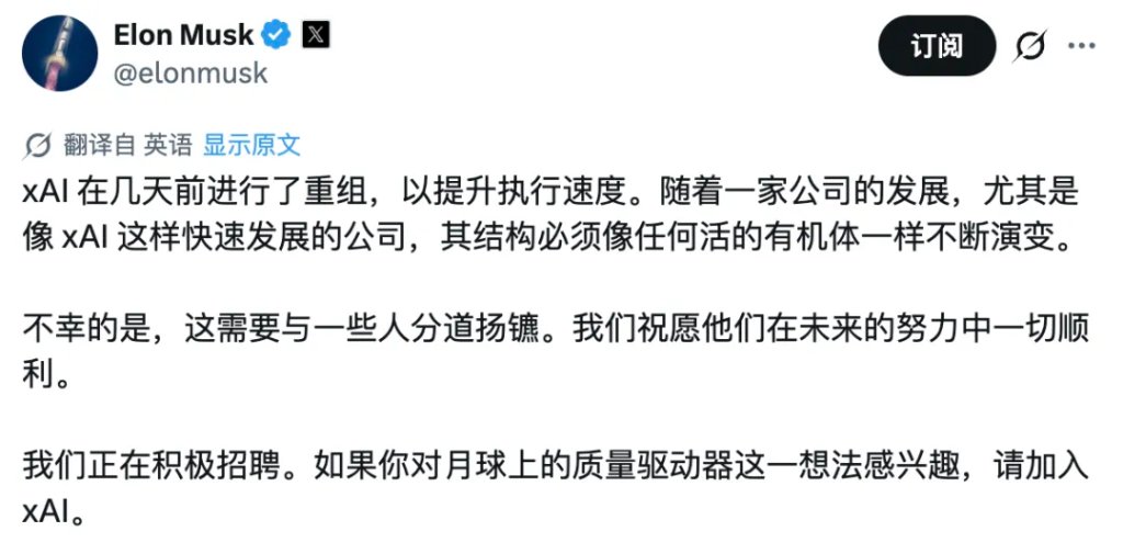 Musk's response was very official: "This is an organizational restructuring that is necessary for xAI to scale up."