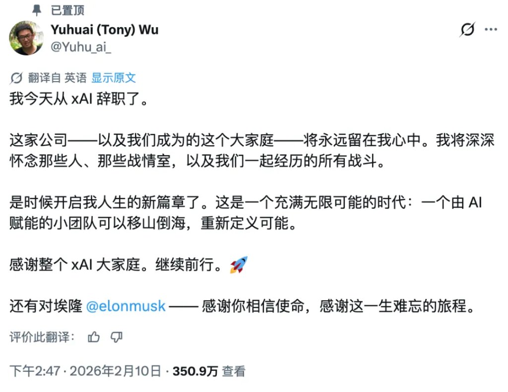 Half of the 12 co-founders have left, at least 9 engineers have publicly announced their departure, and even core executives responsible for inference and research security, Tony Wu and Jimmy Ba, have posted farewell messages, sparking discussion on the X platform.A trend of imitating "I left xAI".